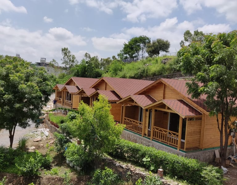 Whether it’s farmland, a hillside, or a forest plot—prefab cottages are ideal.We manufacture in our factory and transport the cottage anywhere in India, minimising on-site work.
